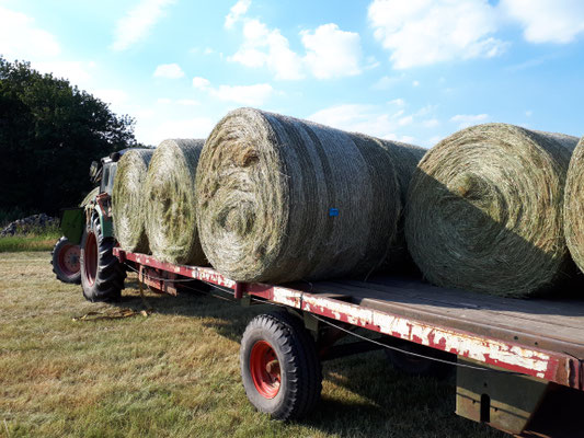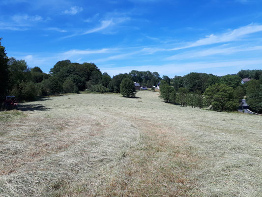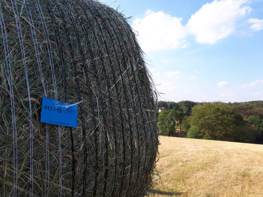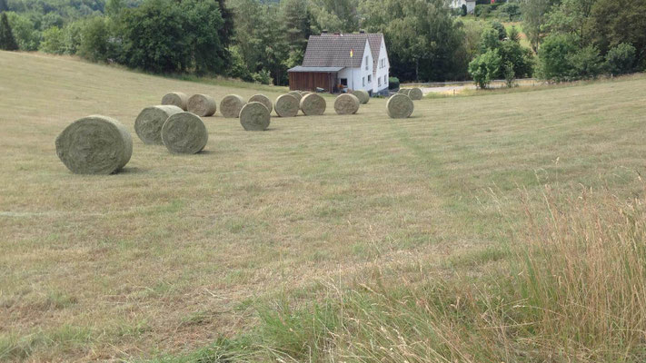 Wiehl im August 2019 - Die Heuwerbung auf unseren artenreichen Magerwiesen ist abgeschlossen! Um für den Artenschutz optimale Bedingungen zu erhalten, beginnen wir erst ab Anfang Juli mit dem ersten Teil, andere Flächen werden erst ab Mitte Juli zur Mahd freigegeben um das Aussamen von Pflanzen wie z.B. Flockenblume oder Margeriten.