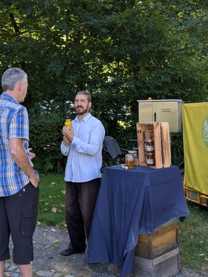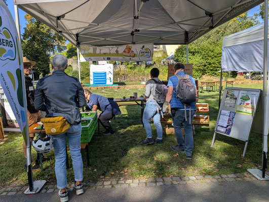 Die Anzahl der Aussteller war groß, die Anzahl der Besucher ebenso. Auch das leibliche Wohl kam nicht zu kurz. Hier gab es für jeden Geschmack etwas zu finden. Für die jungen Besucher*innen gab es verschiedene Quiz-Angebote. So konnte man am Gemeinschaftsstand von Biologischer Station, Landwirtschaft und NABU verschiedene Fragen beantworten. Z.B. welches Insekt Kugeln aus den Misthaufen der Kühe formt und darin die Eier ablegt.