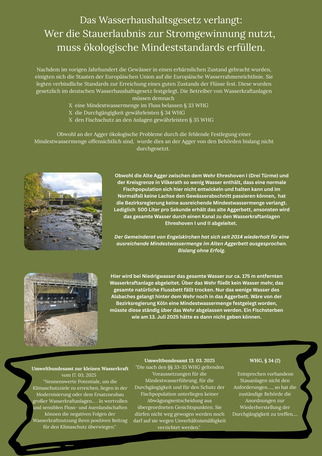Aggerkraftwerke dazu nicht bereit oder in der Lage sind, müssen die Anlagen zurückgebaut und die Agger renaturiert werden."