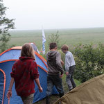 Eine ganzer Tag (einschließlich der Nacht) voller Naturerleben sollte es werden - mit Zelten im Grennebachbiotop, Naturbeobachtungen und viel Spaß im Freien. Und obwohl das Wetter denkbar schlecht war, haben die Wipperkids auch eine tolle Naturnacht erlebt! Über ein Dutzend Kinder sammelten sich schon am vergangenen Samstag um 14:00 an den Grennebachteichen. Mieses Wetter konnte die Wipperkids nicht vom Naturerleben abhalten. Trotz Nieselregen wurde natürlich gezeltet. Und auch Natur-Untersuchungen kamen nicht zu kurz: Mit Fledermausdetektoren bestückt konnten die Wipperkids 2 verschiedene Fledermausarten an ihren Teichen nachweisen: Wasserfledermaus und Zwergfledermaus. Bis zum gemeinsamen Abschlußfrühstück am Sonntag 10:00 hatten die Wipperkids "Spaß trotz Naß". Die nächste lange Naturnacht findet dann sicher im Trocknen statt!